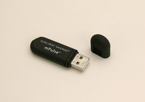 The data drive looks and functions similar to a thumb drive. Simply plug it into your computer and it wirelessly receives heart rate and number of calories burned during your sauna sessions.